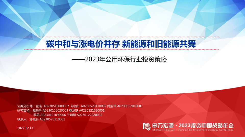 【申万宏源】【20221213】2023年公用环保行业投资策略:碳中和与涨电价并存,新能源和旧能源共舞-61页
