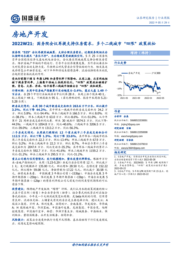 【国盛证券】【20220529】房地产开发2022W21:国务院会议再提支持住房需求,多个二线城市“四限”政策放松-16页