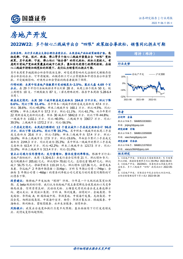 【国盛证券】【20220605】房地产开发2022W22:多个核心二线城市出台“四限”政策组合拳放松,销售同比拐点可期-14页