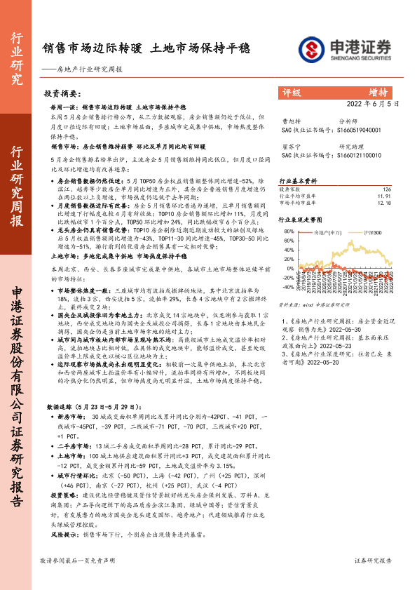 【申港证券】【20220605】房地产行业研究周报:销售市场边际转暖 土地市场保持平稳-12页
