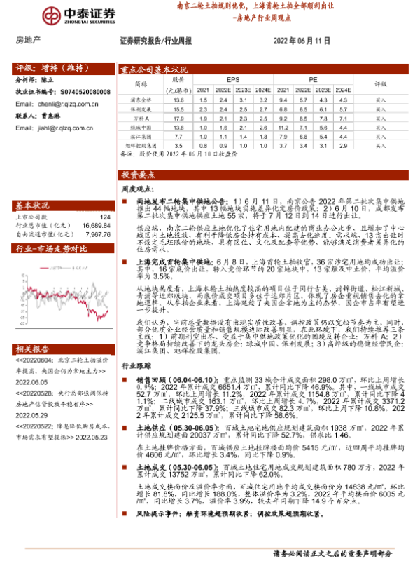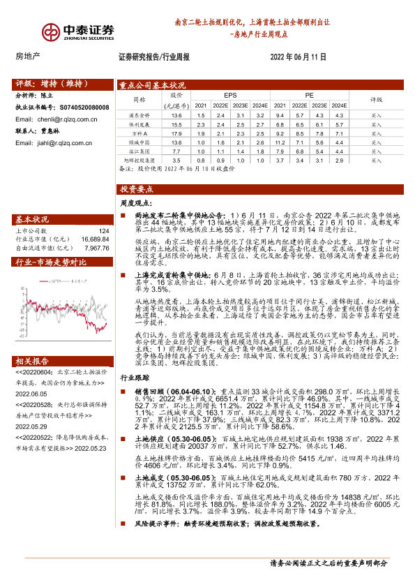 【中泰证券】【20220611】南京二轮土拍规则优化,上海首轮土拍全部顺利出让-11页