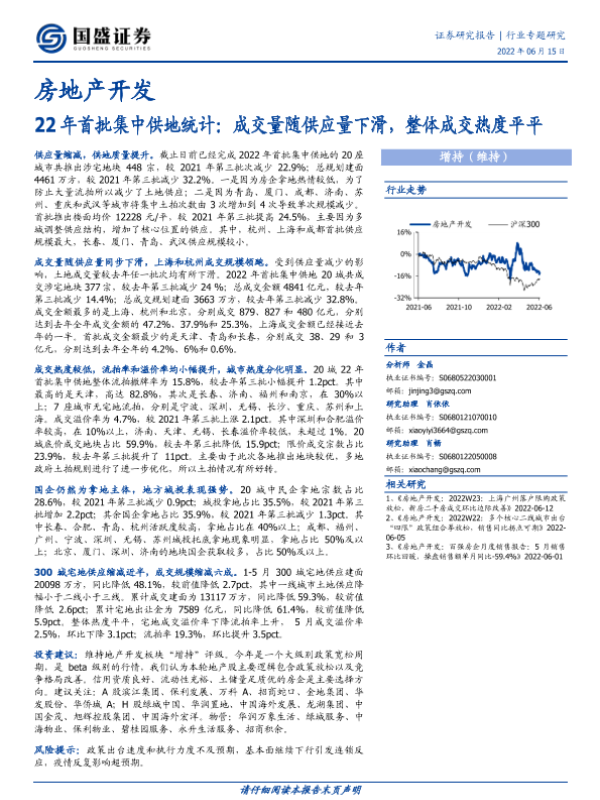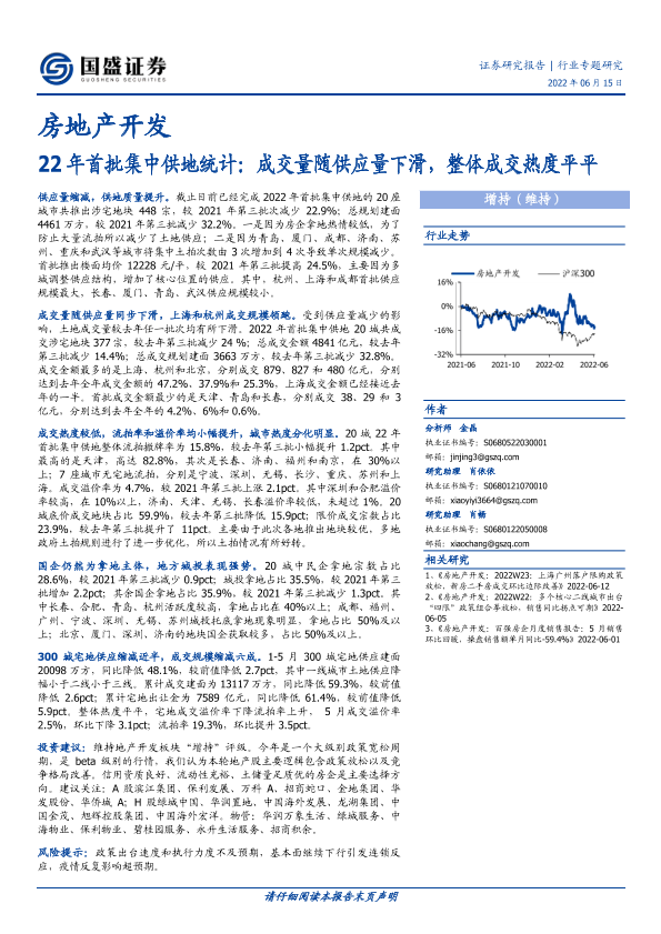 【国盛证券】【20220615】22年首批集中供地统计:成交量随供应量下滑,整体成交热度平平-12页