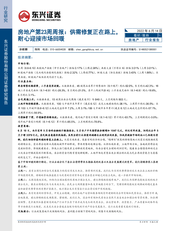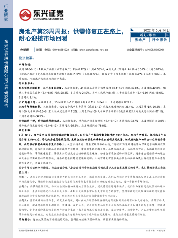 【东兴证券】【20220614】房地产第23周周报:供需修复正在路上,耐心迎接市场回暖-27页