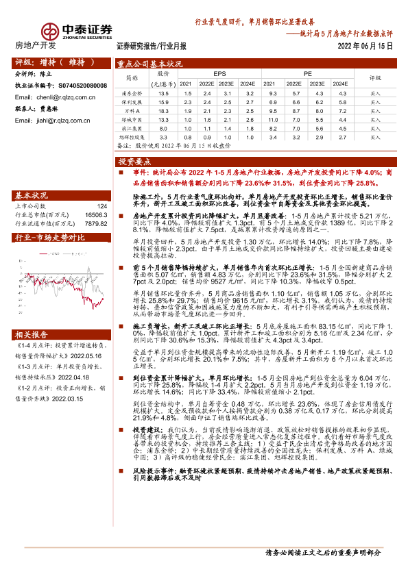 【中泰证券】【20220615】行业景气度回升,单月销售环比显著改善-5页