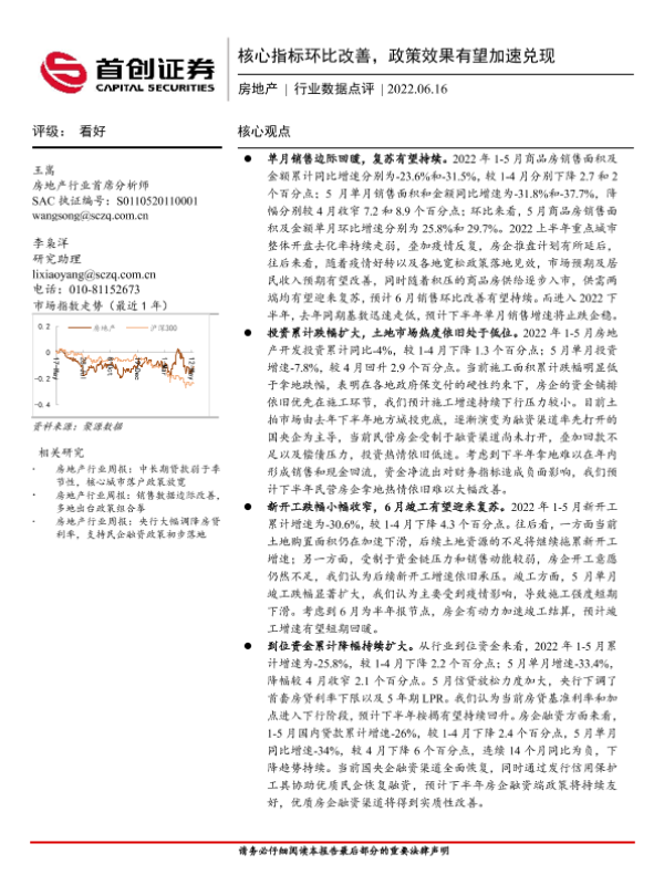 【首创证券】【20220616】房地产行业数据点评:核心指标环比改善,政策效果有望加速兑现-11页