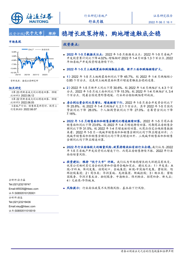 【海通证券】【20220616】房地产行业月报:稳增长政策持续,购地增速触底企稳-11页