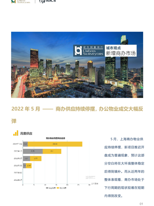 【城市测量师行】【20220622】房地产行业2022年5月:商办供应持续停摆,办公物业成交大幅反弹-5页
