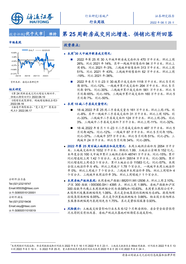 【海通证券】【20220625】第25周新房成交同比增速、供销比有所回落-6页