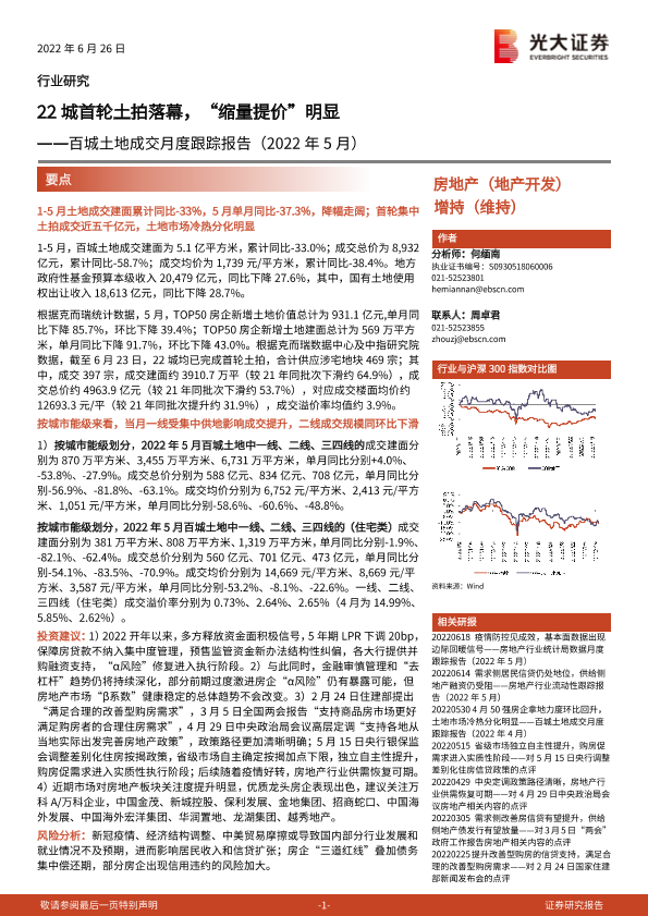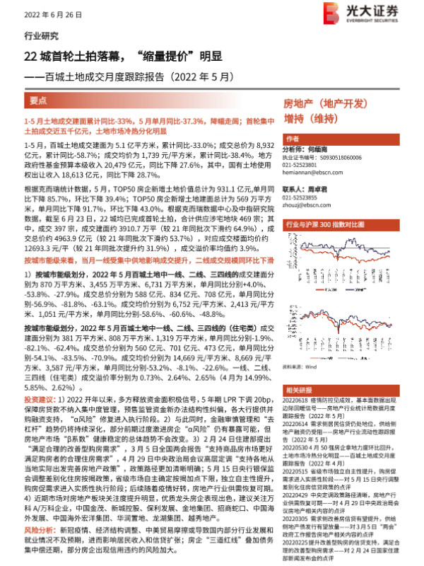 【光大证券】【20220626】22城首轮土拍落幕,“缩量提价”明显-16页