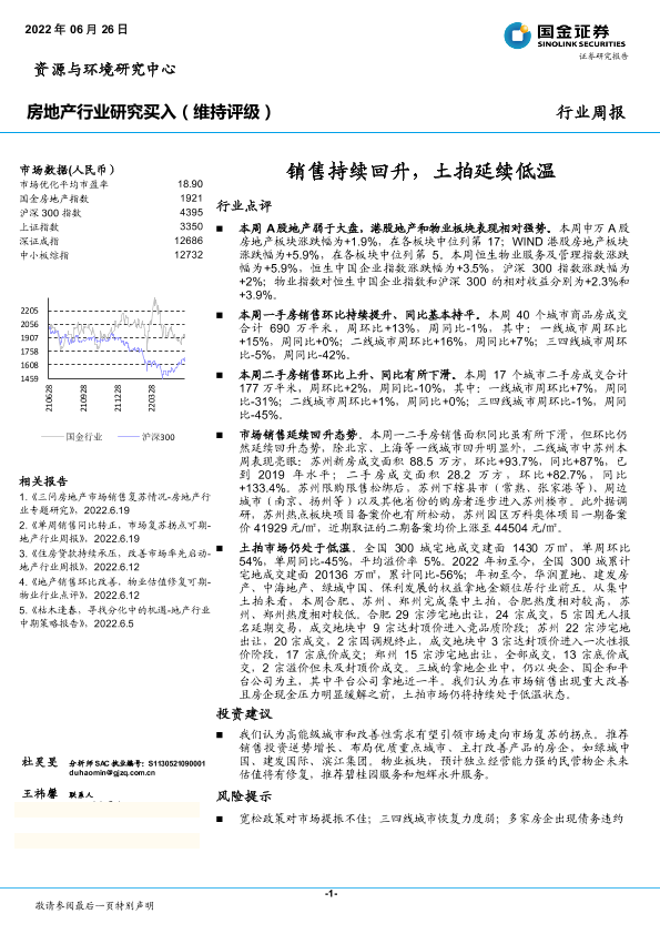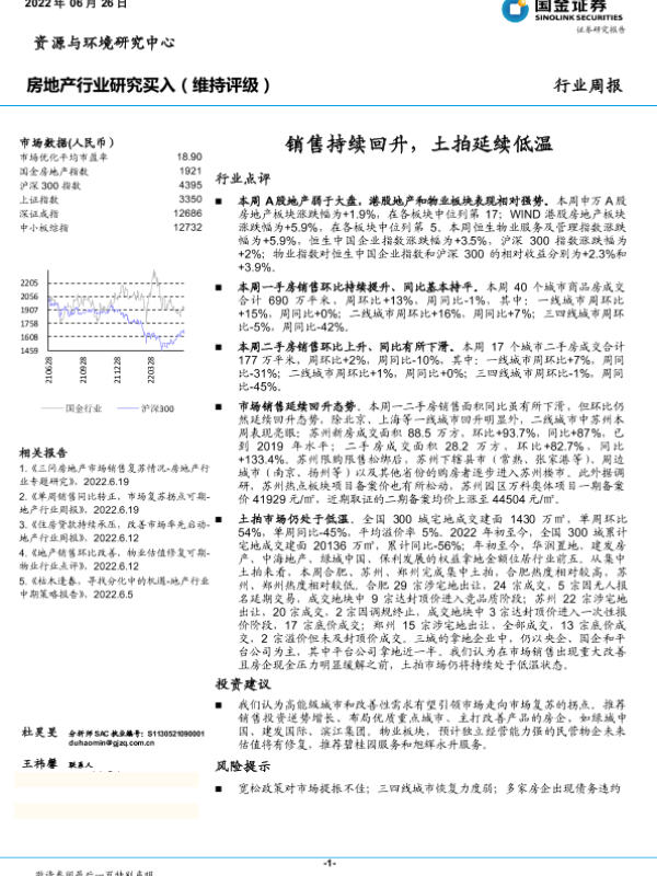 【国金证券】【20220626】房地产行业研究:销售持续回升,土拍延续低温-18页
