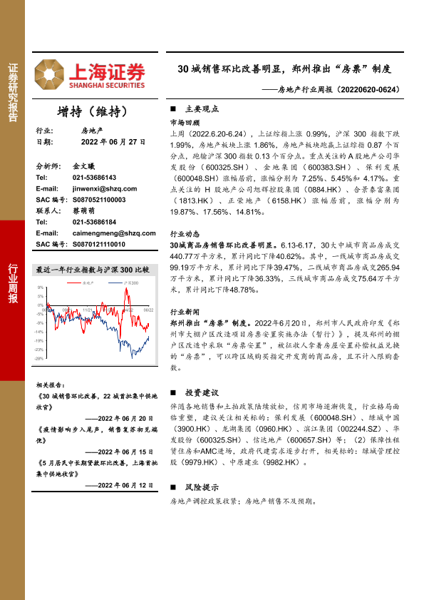 【上海证券】【20220627】30城销售环比改善明显,郑州推出“房票”制度-13页