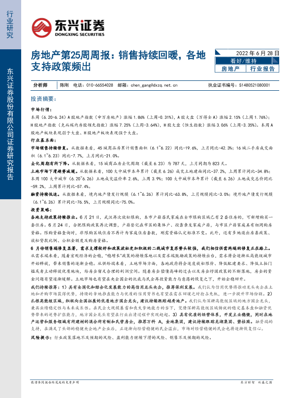 【东兴证券】【20220628】房地产第25周周报:销售持续回暖,各地支持政策频出-27页