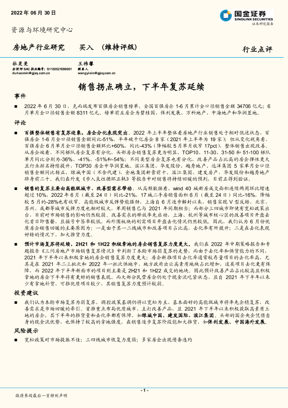 【国金证券】【20220630】销售拐点确立,下半年复苏延续-9页