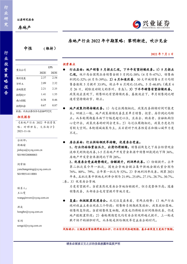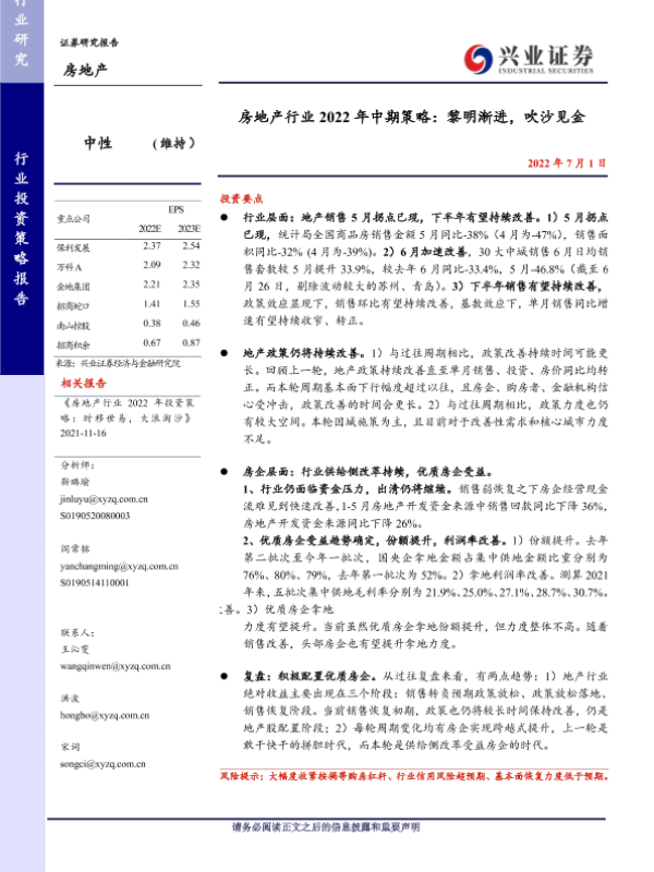 【兴业证券】【20220701】房地产行业2022年中期策略:黎明渐进,吹沙见金-27页