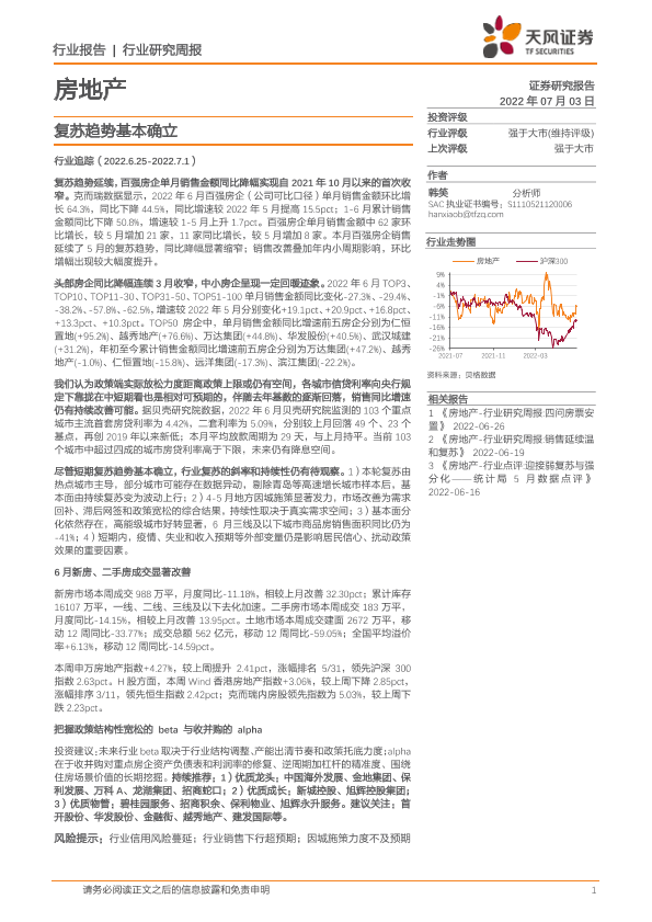 【天风证券】【20220703】房地产行业研究周报:复苏趋势基本确立-19页