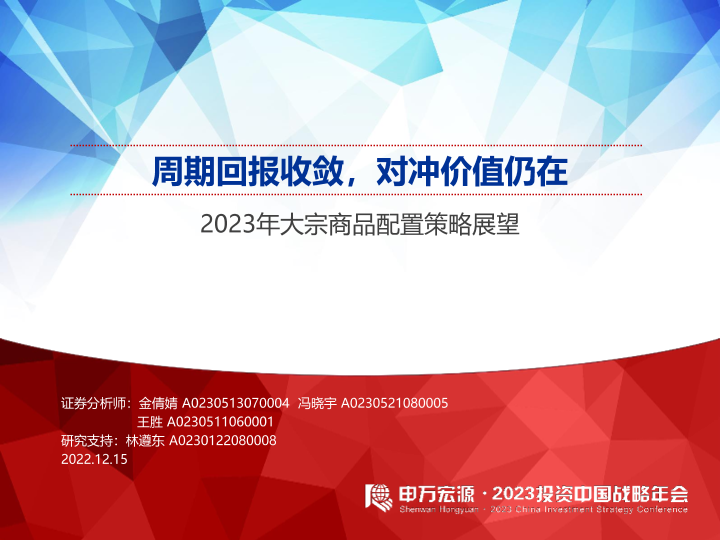 【申万宏源】【20221215】2023年大宗商品配置策略展望:周期回报收敛,对冲价值仍在-50页