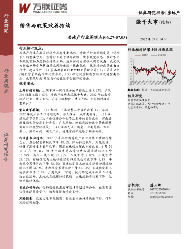 【万联证券】【20220704】房地产行业周观点:销售与政策改善持续-15页