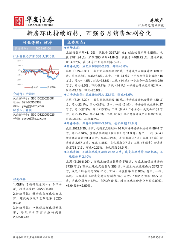 【华安证券】【20220704】房地产行业周报:新房环比持续好转,百强6月销售加剧分化-20页