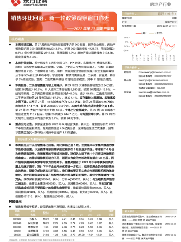 【东方证券】【20220711】房地产行业2022年第27周地产周报:销售环比回落,新一轮政策观察窗口临近-16页