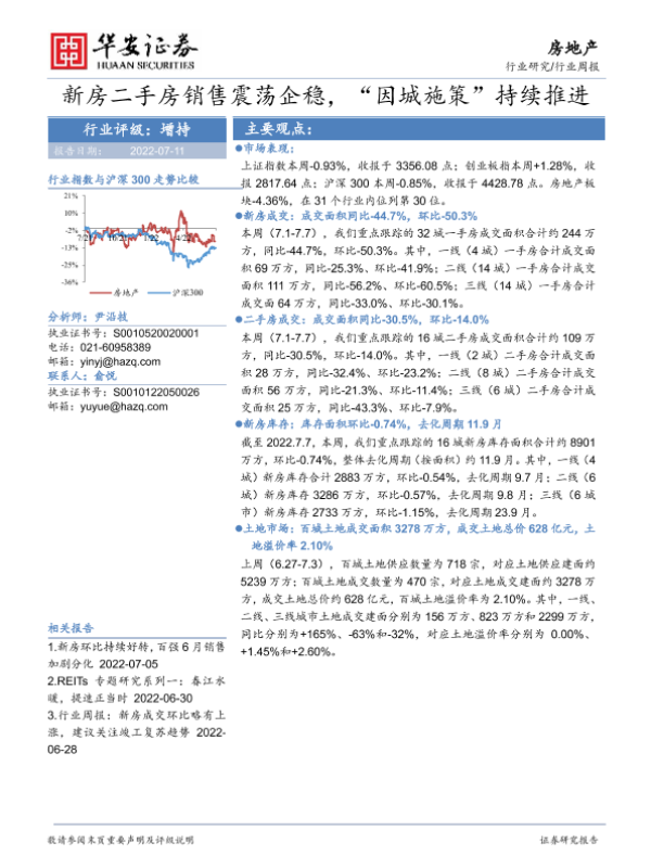 【华安证券】【20220711】房地产行业周报:新房二手房销售震荡企稳,“因城施策”持续推进-20页
