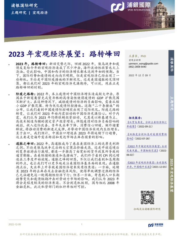 【浦银国际】【20221209】2023年宏观经济展望:路转峰回-36页