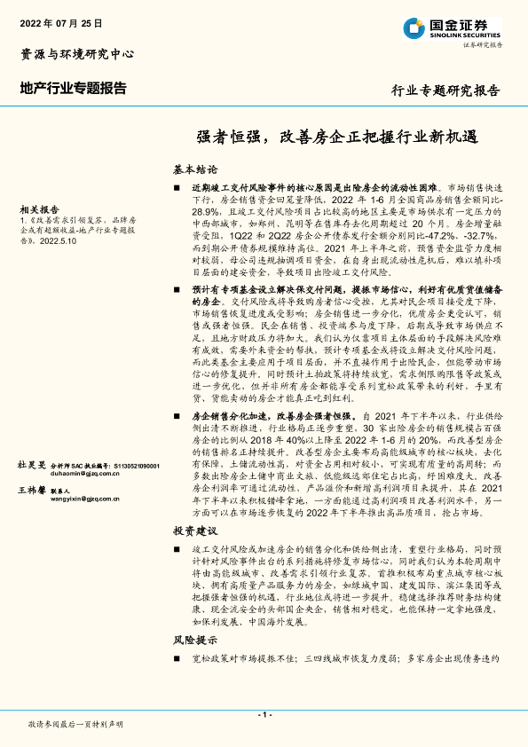 【国金证券】【20220725】地产行业专题报告:强者恒强,改善房企正把握行业新机遇-19页
