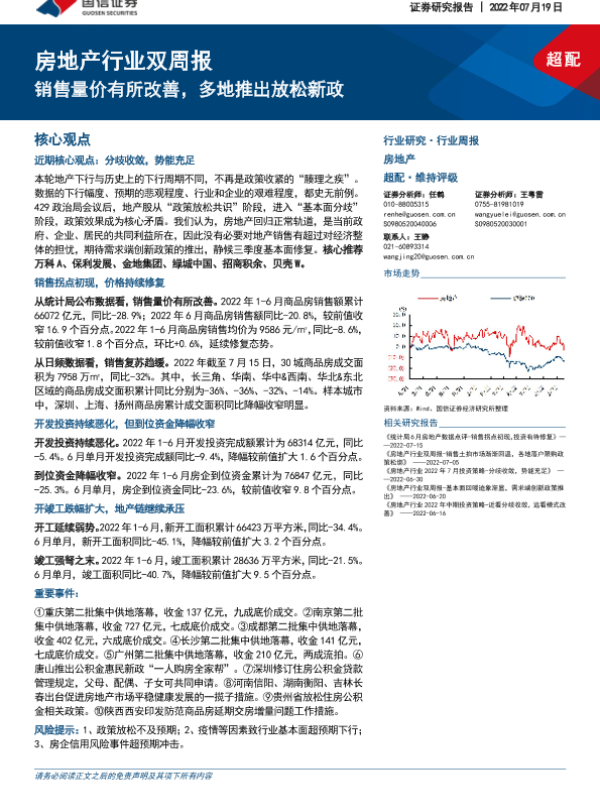 【国信证券】【20220719】房地产行业双周报:销售量价有所改善,多地推出放松新政-13页
