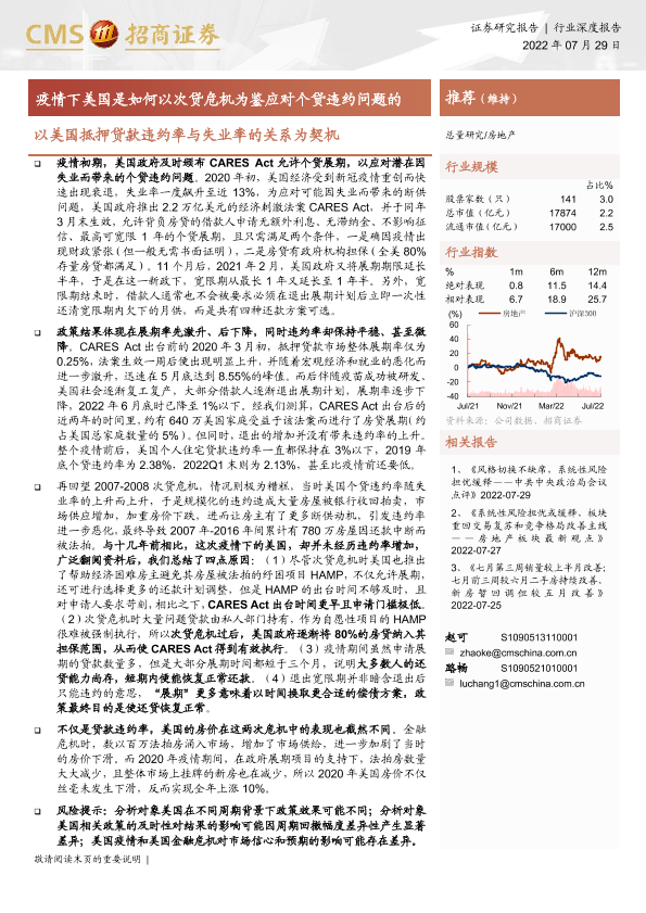 【海通证券】【20220729】以美国抵押贷款违约率与失业率的关系为契机 - 疫情下美国是如何以次贷危机为鉴应对个贷违约问题的-9页