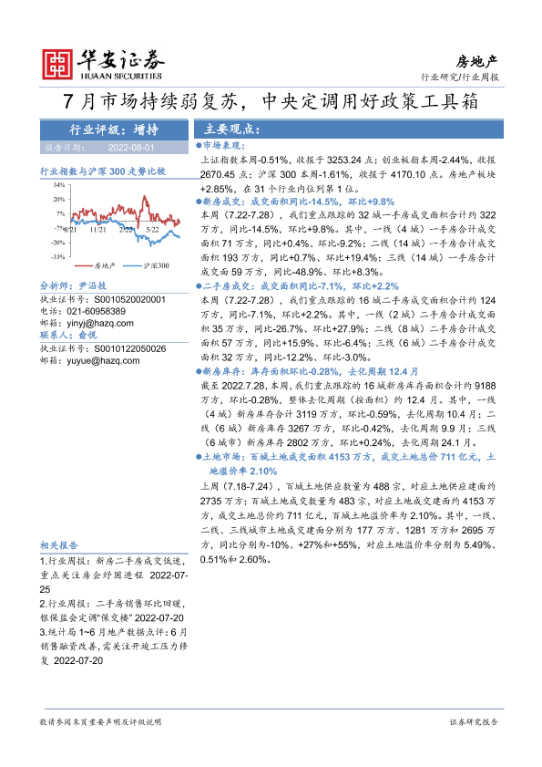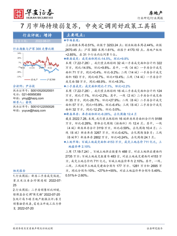 【华安证券】【20220801】7月市场持续弱复苏,中央定调用好政策工具箱-20页