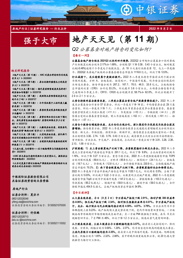 【中银证券】【20220802】Q2公募基金对地产持仓的变化如何?-9页