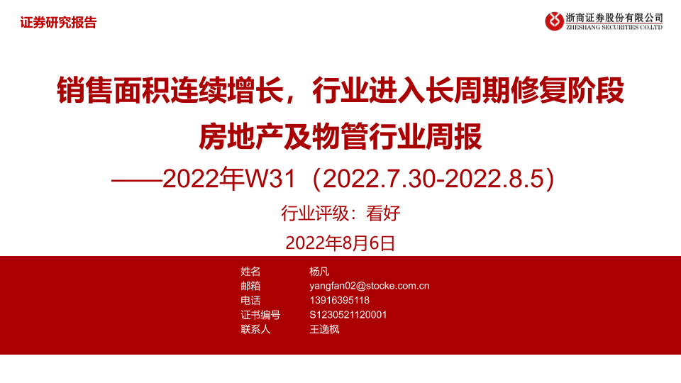 【浙商证券】【20220806】房地产及物管行业周报:销售面积连续增长,行业进入长周期修复阶段-39页