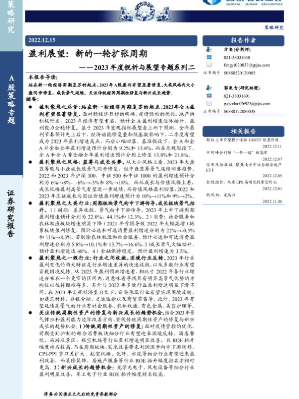 【国泰君安证券】【20221215】2023年度锐析与展望专题系列二:盈利展望,新的一轮扩张周期-22页