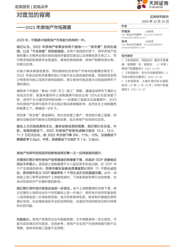 【天风证券】【20221210】2023年房地产市场展望:对直觉的背离-20页
