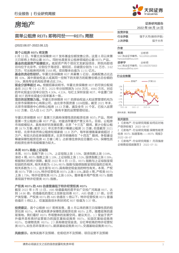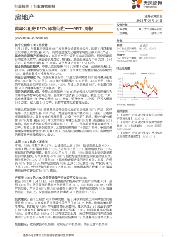 【天风证券】【20220814】首单公租房REITs即将问世-9页