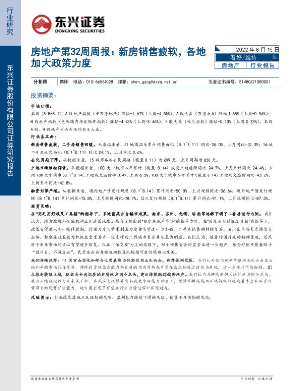 【东兴证券】【20220815】房地产第32周周报:新房销售疲软,各地加大政策力度-30页