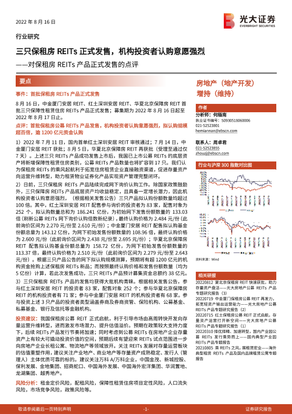 【光大证券】【20220816】对保租房REITs产品正式发售的点评-2页