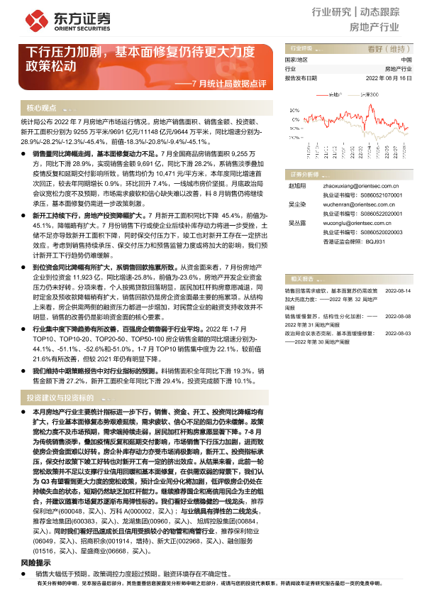 【东方证券】【20220816】房地产行业7月统计局数据点评:下行压力加剧,基本面修复仍待更大力度政策松动-10页