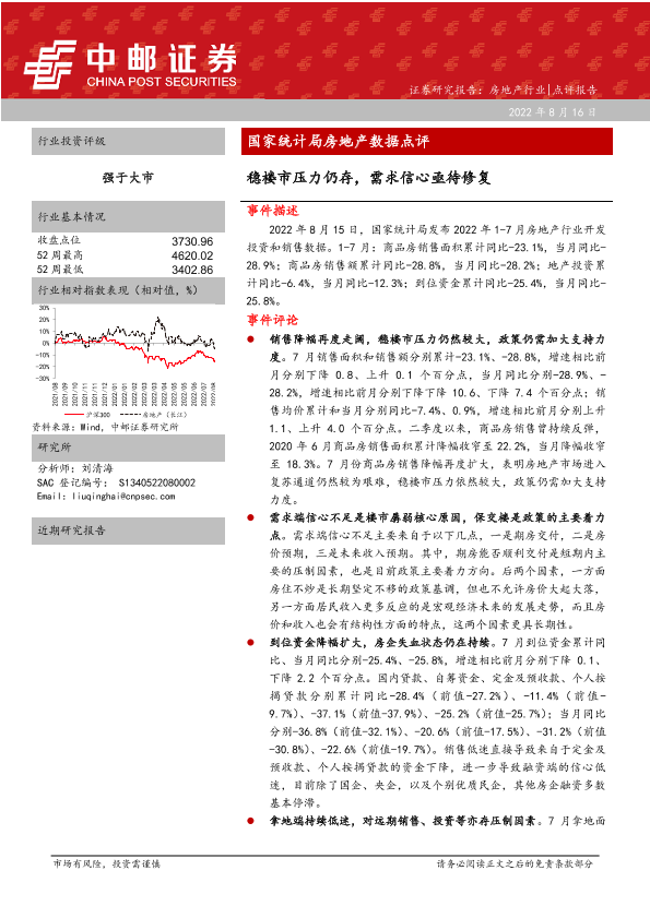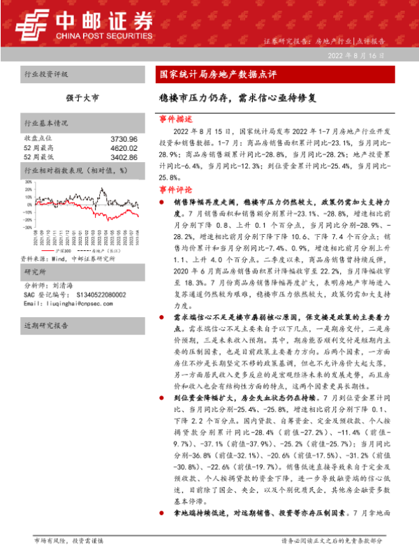 【中邮证券】【20220816】国家统计局房地产数据点评 稳楼市压力仍存,需求信心亟待修复-12页