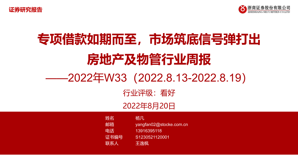 【浙商证券】【20220820】房地产及物管行业周报2022年W33:专项借款如期而至,市场筑底信号弹打出-29页