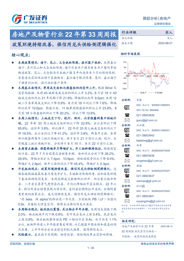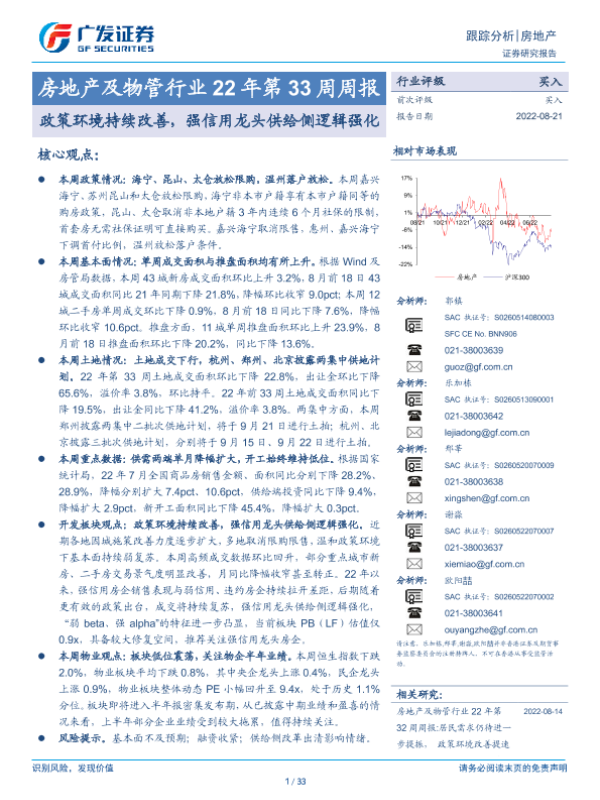 【广发证券】【20220821】房地产及物管行业22年第33周周报:政策环境持续改善,强信用龙头供给侧逻辑强化-33页
