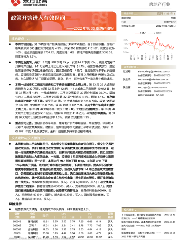 【东方证券】【20220822】房地产行业2022年第33周地产周报:政策开始进入有效区间-16页