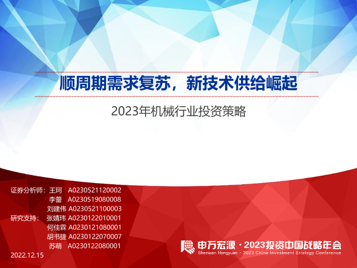 【申万宏源】【20221215】2023年机械行业投资策略:顺周期需求复苏,新技术供给崛起-75页