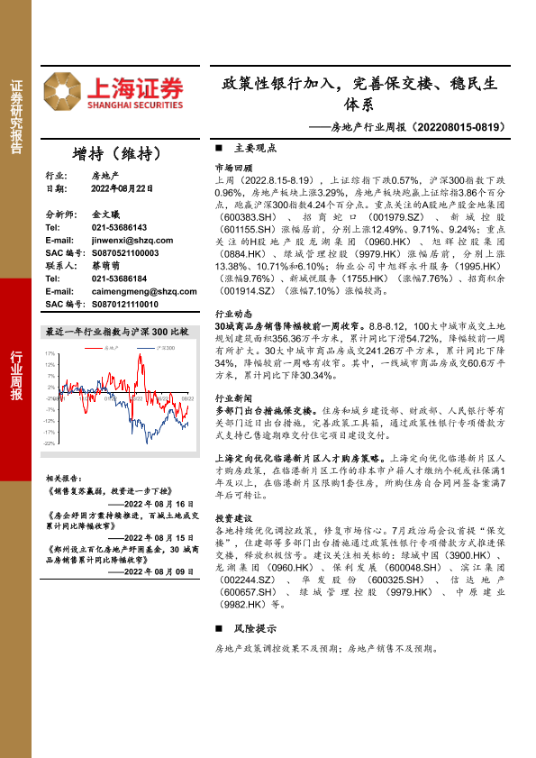 【上海证券】【20220822】房地产行业周报:政策性银行加入,完善保交楼、稳民生体系-11页