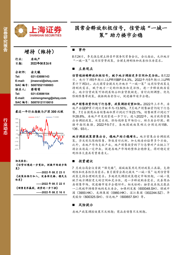 【上海证券】【20220826】国常会释放积极信号,信贷端“一城一策”助力楼市企稳-4页
