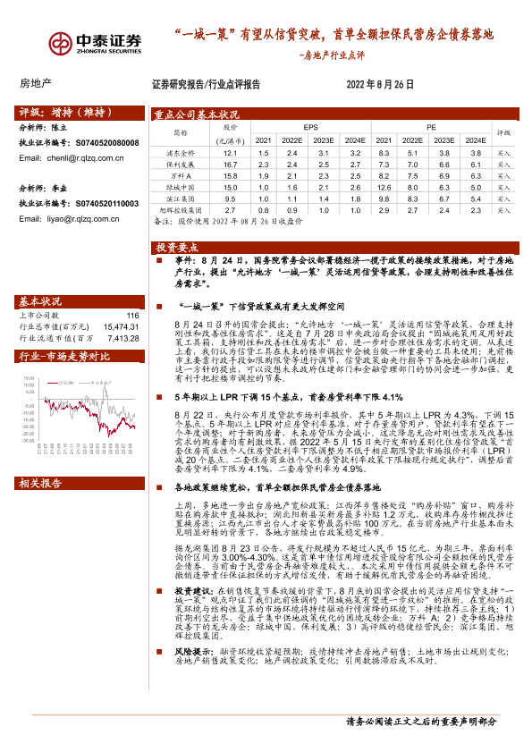 【中泰证券】【20220826】“一城一策”有望从信贷突破,首单全额担保民营房企债券落地-2页