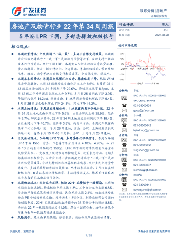 【广发证券】【20220828】房地产及物管行业22年第34周周报:5年期LPR下调,多部委释放积极信号-32页