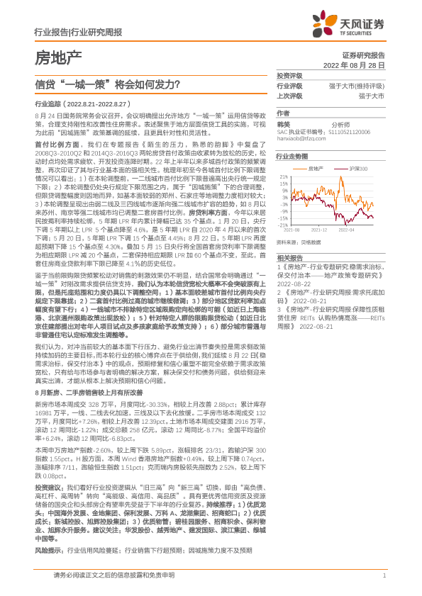 【天风证券】【20220828】房地产行业研究周报:信贷‘一城一策’将会如何发力?-18页