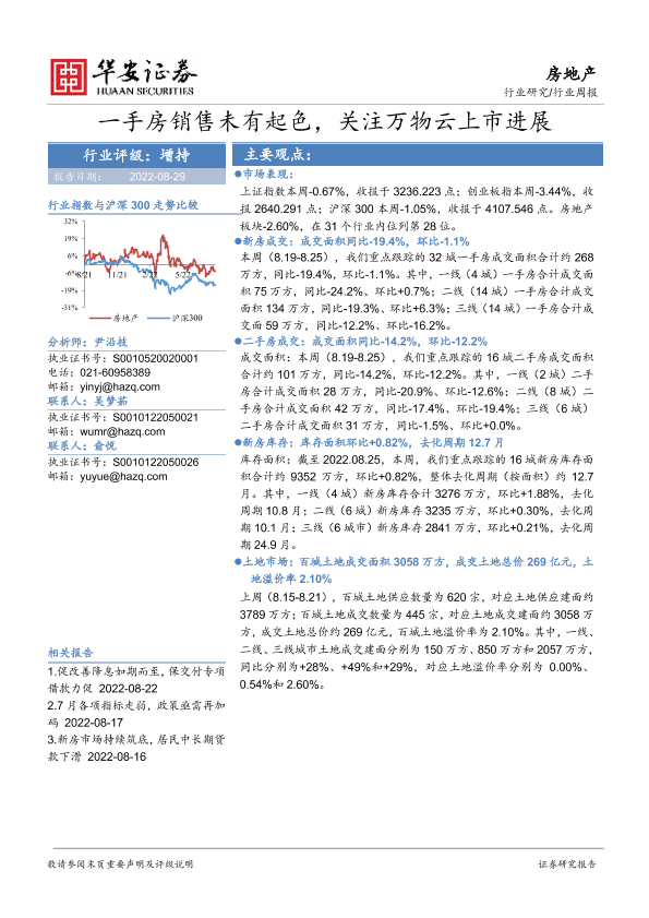 【华安证券】【20220829】一手房销售未有起色,关注万物云上市进展-22页