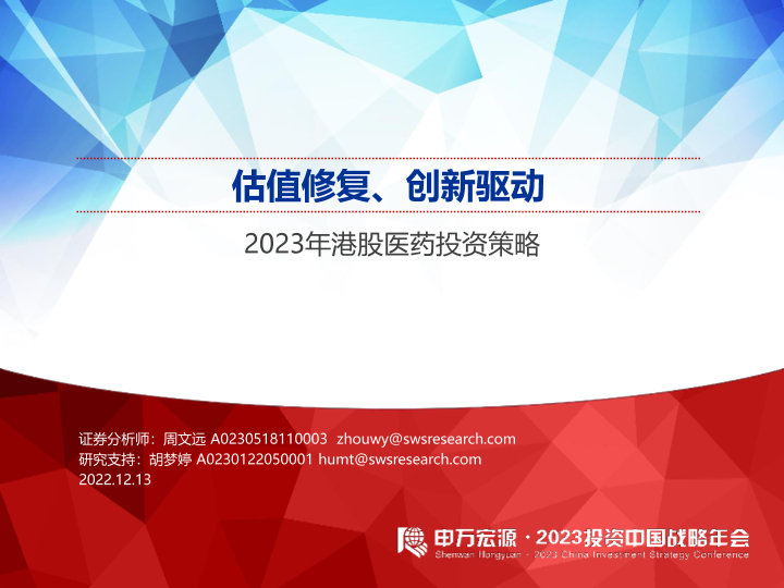 【申万宏源】【20221213】2023年港股医药行业投资策略:估值修复、创新驱动-33页