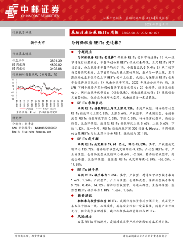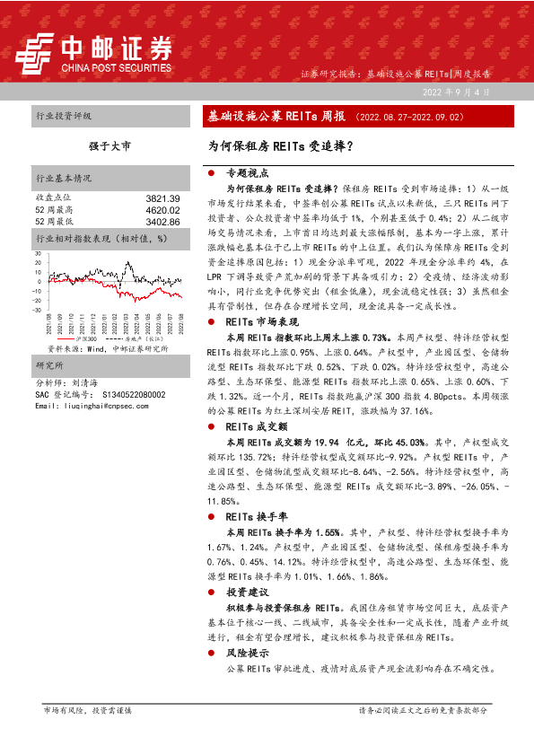 【中邮证券】【20220904】基础设施公募REITs周报:为何保租房REITs受追捧?-19页